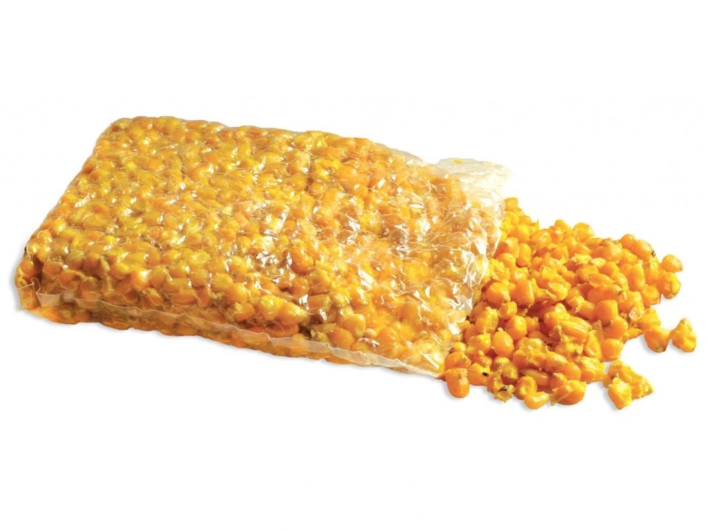 Vařená kukuřičná zrna jsou oblíbenou pochoutkou nejen pro kapry, ale také amury a další ryby. Naši vařenou kukuřice lze použít jako nástrahu nebo krmení, skvěle funguje jako doplněk methodmixů nebo krmítkových směsí. Při výrobě používáme mírnou dávku šetrného konzervantu. Vakuově baleno. Po otevření spotřebujte do 10 dní.