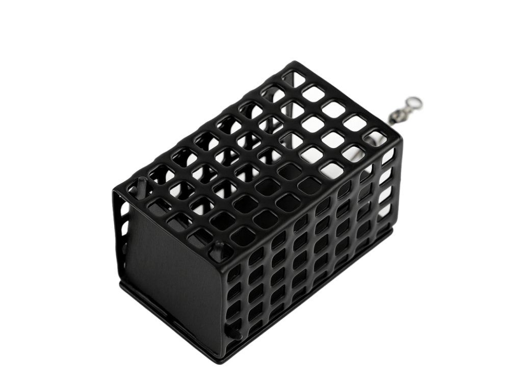 Toto obdélníkové krmítko je vyrobeno z odolné kovové síťoviny a je zatíženo olovem. Má odnímatelné plastové dno a robustní obratlík, který účinně zabraňuje zamotávání vlasce.