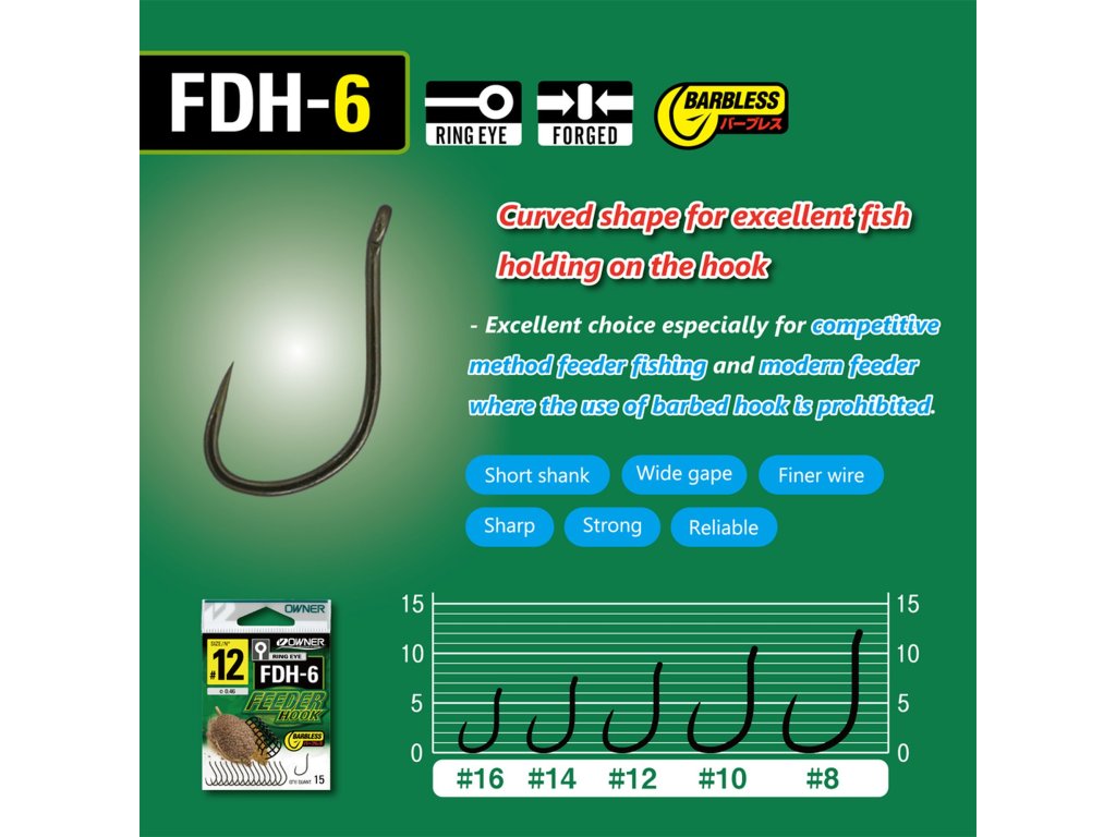 Moderní bezprotihrotový háček s výraznějším zahnutím (wide gape) a speciální křivkou pro bezpečný zásek a minimální ztráty ryb během zdolávání. Navržený pro method feeder, ideální při lovu opatrných ryb.