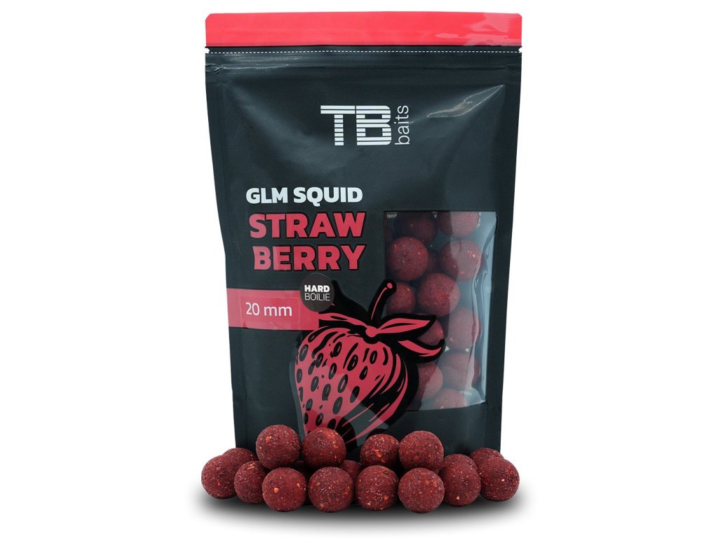 Toto boilie bylo první, které jsme vytvořili pod vlastní značkou TB Baits. S boiliem obdobných příchutí jsme měli vždy velmi dobré zkušenosti a Tomáš Blažek na něj ulovil v roce 2013 i svůj rekord, kterým byla slavná ryba s názvem Moby Dick o váze 35,8 kg na legendárním jezeře Lac du Der. O rok později se Tomášovi již na naše boilie GLM Squid Strawberry podařilo přelstít další gigantickou rybu o hmotnosti 33,6 kg. Toto boilie je založeno na olihňové moučce s velkým podílem GLM extraktu a chuťovým stimulátorem s příchutí jahod, vaječný ptačím zobem s hmyzem a drcených slávek. Dále obsahuje esenci jahoda, esenciální olej černý pepř, tekutou potravu Power Amino, Power Liver, sůl a NHDC.